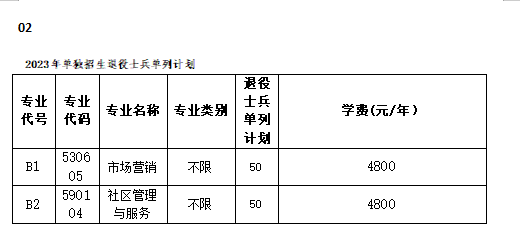 退役軍人考生單列計劃、單獨錄取。