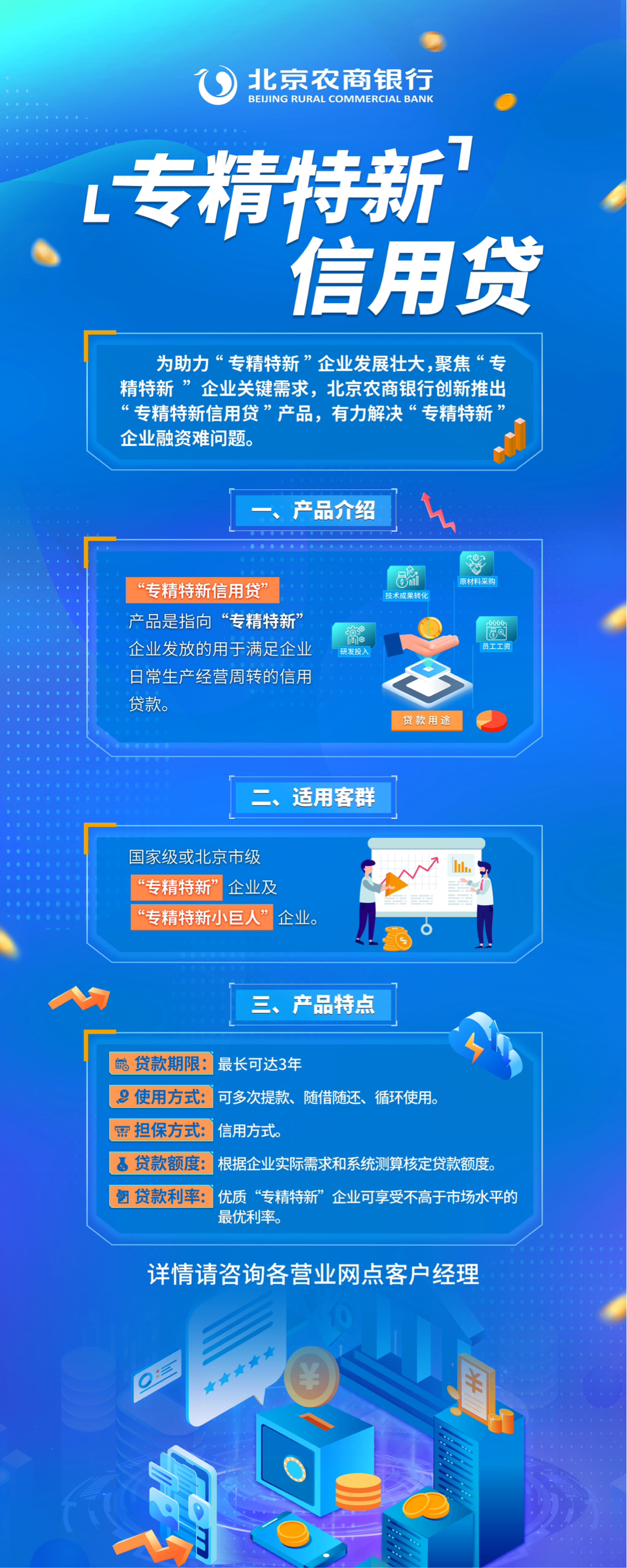 支持“專精特新”中小企業發展永遠在路上。未來,北京農商銀行將致力于“精益求精”金融服務,爭做專精特新企業發展路上的“融資伙伴”和“成長顧問”。以本次獲獎為契機,不斷深化調整貸款產品定位和服務重心,持續優化“專精特新”企業貸款產品要素,著眼于產品創新、審批創新、模式創新、機制創新“四大創新”為抓手,精準“解碼”特色金融服務助力“專精特新”企業振翅高飛。