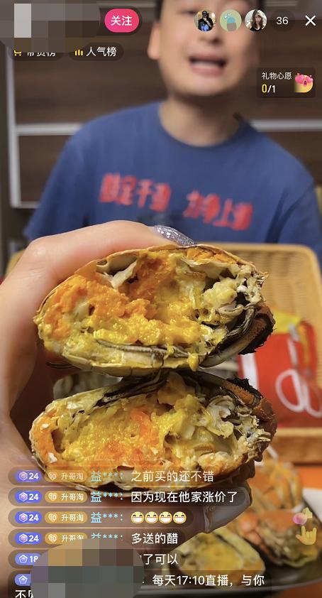 “家人們,看看這個蟹黃,真的太香了。”“這個價只賣今天一天,錯過了就沒有。”“最低價了最低價了!”如今,大閘蟹已然走入各大直播間,成為這個時節熱賣的水產,在不同的直播間里,主播們賣力叫賣,引得不少觀眾下單。