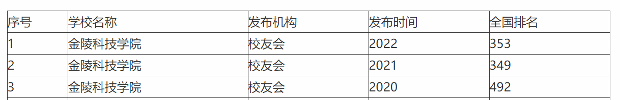 在校友會排名中,金陵科技學院2022年排名353,相比較于2021年有所退步,但比2020年進步不少。