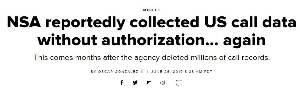 據悉,美國國家安全局……又……在未經授權的情況下收集美國人的通話數據了(via CNET)