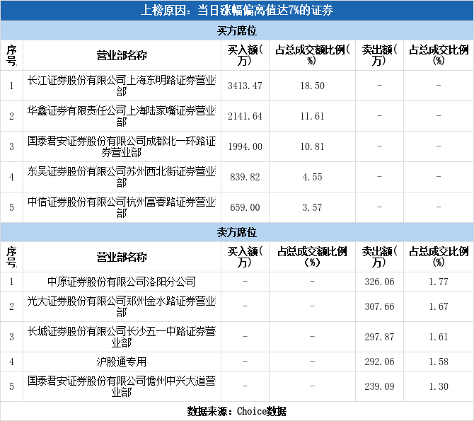 今日榜單上出現了一家實力營業部。買二為華鑫證券上海陸家嘴證券營業部,該席位買入2141.64萬元。近三個月內該席位共上榜67次,實力排名第43。華鑫證券上海陸家嘴證券營業部今日還參與了挖金客(凈買額-573.39萬元)。