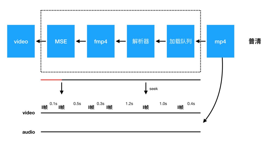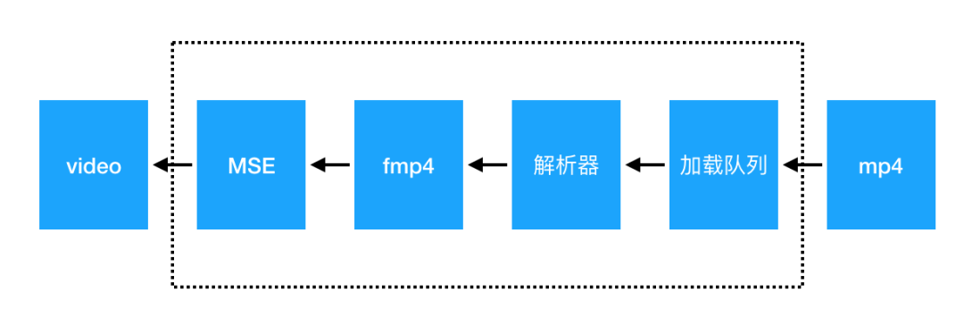 首先,我們改變對 mp4 視頻的播放流程,不再直接使用 video 的 src 來播放,因為我們沒有任何可以操作的空間。video不僅支持 src 屬性還支持 Blob 對象,我們就是利用后者。播放的流程如下: