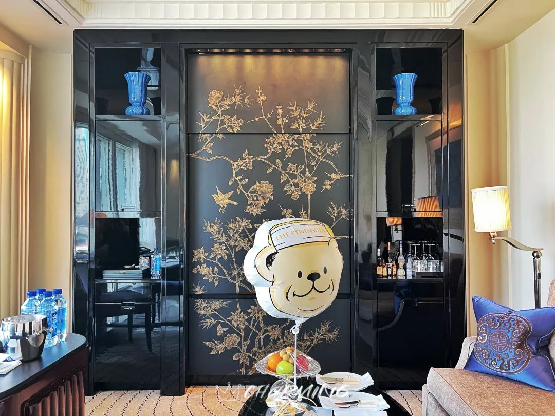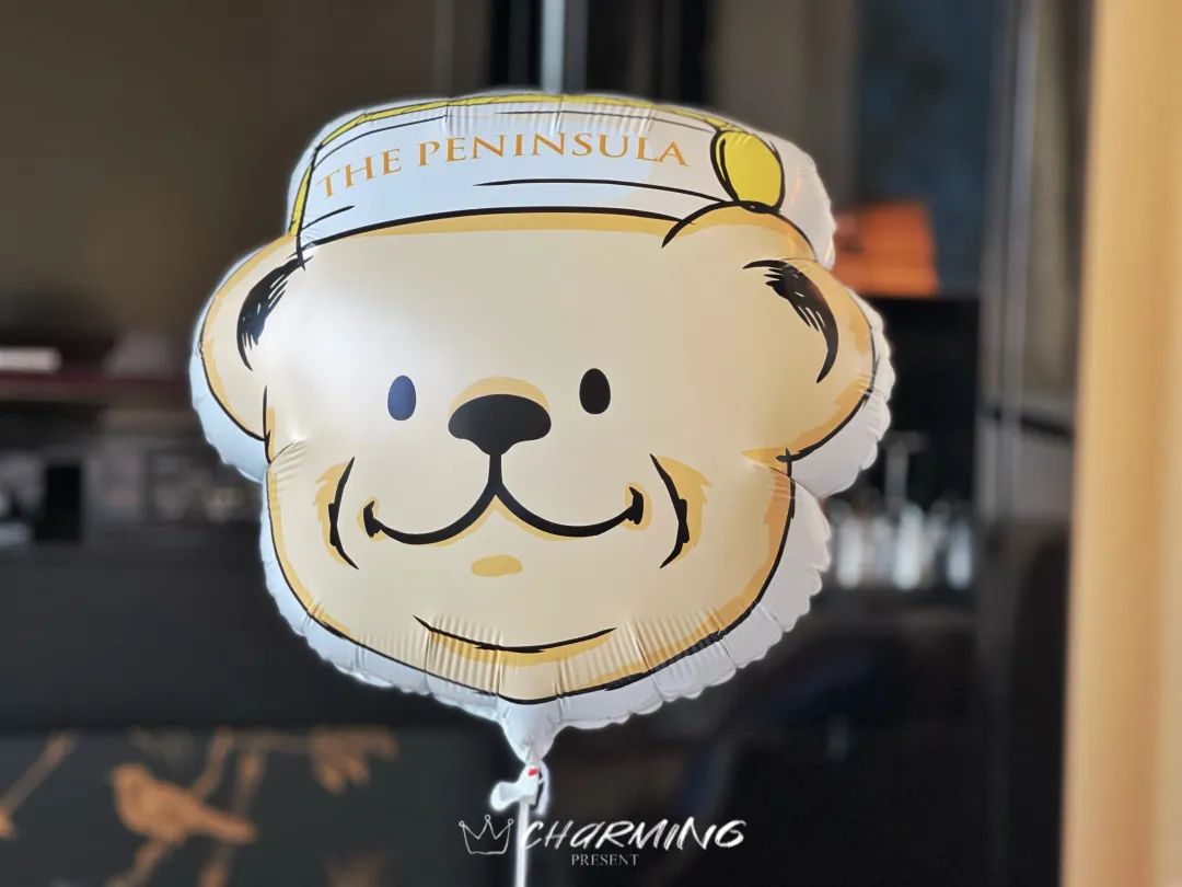 除了歡迎水果,巧克力及軟糖外,酒店還提供了生日蛋糕和非常可愛的半島小熊氣球。