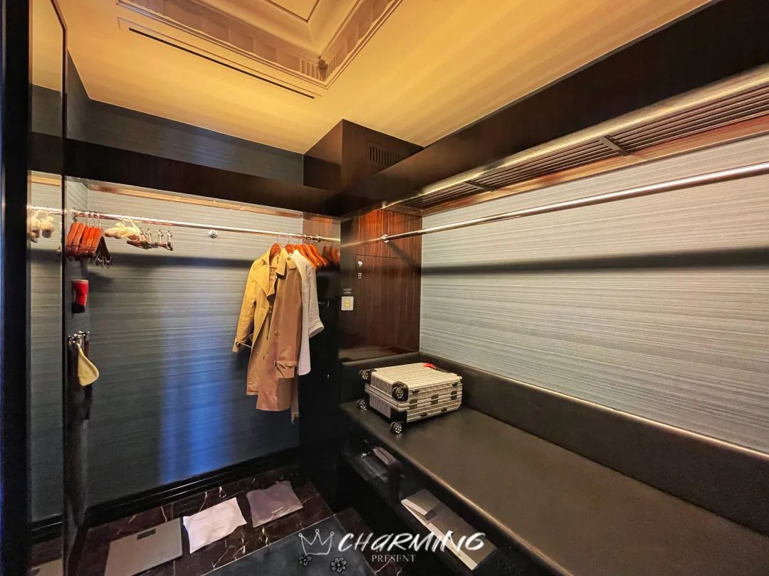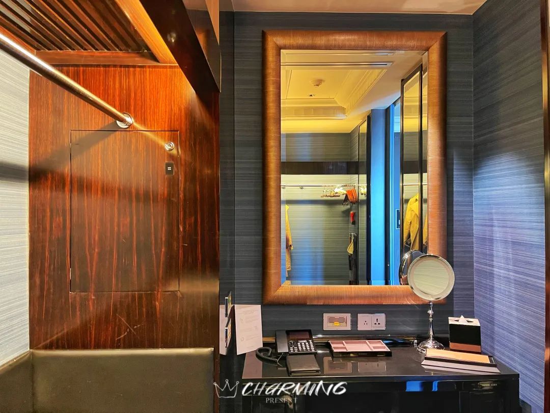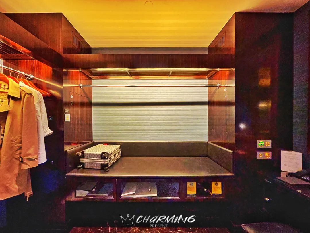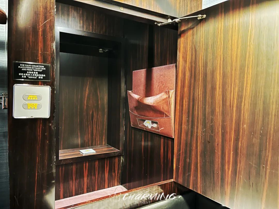 除此之外,衣帽間還藏有一個小心機——衣物收集箱&收件箱。你只需要將需要換洗的衣服放入這個小箱子中,關上門并按下服務按鈕,服務員就可以從客房外另一個小門打開并取走衣物。同樣的,如果你有需要接收的信件或是送回干凈的衣物,服務員也可以從外側打開箱門放入其中,實現私密的零接觸服務。