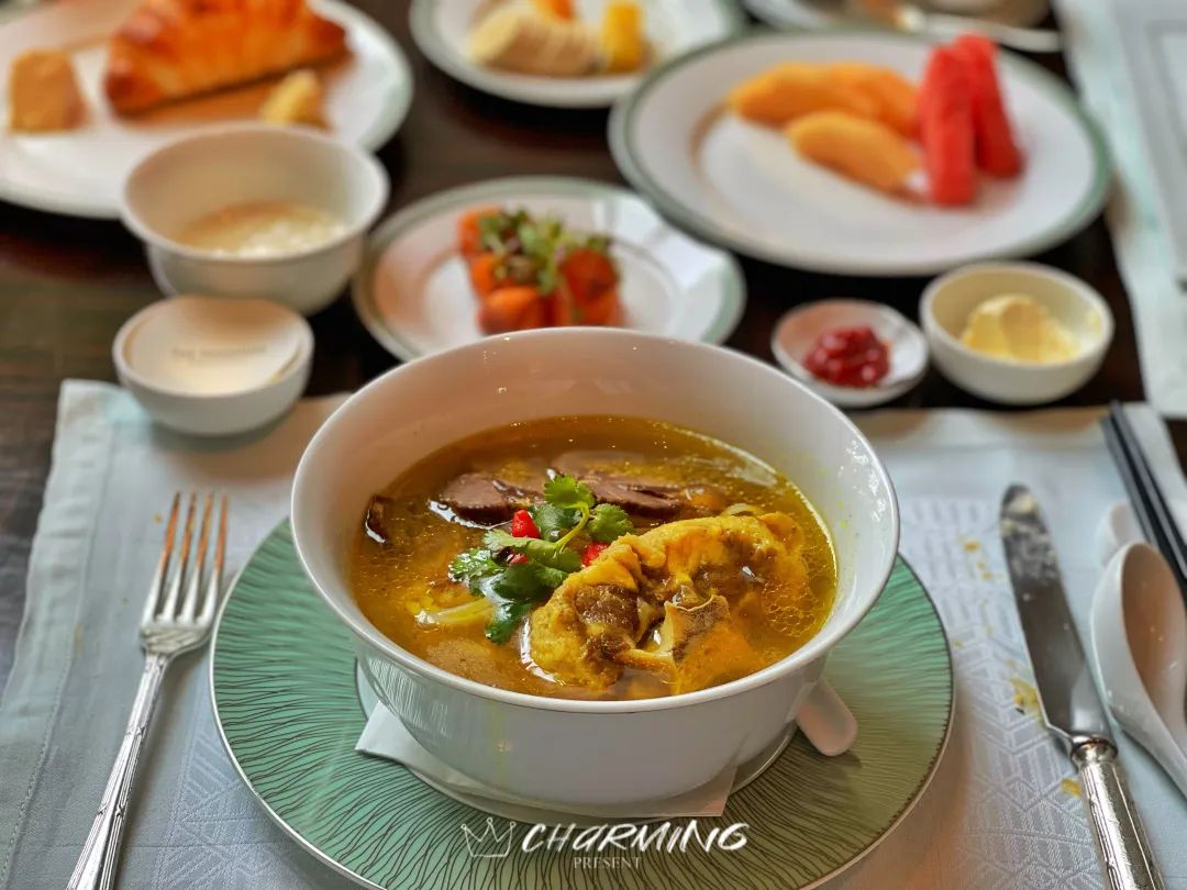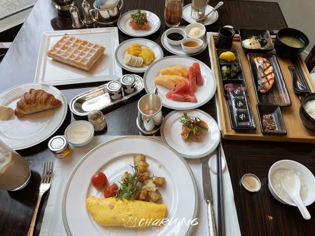 半島的早餐采用半自助式,所有的主菜都是單點。主菜都是按照一份正餐的形式提供的,所以千萬不要貪心,建議每次點一份,吃完再點,節約糧食。