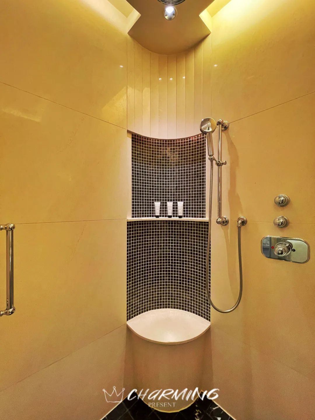 浴缸的所有功能都通過電子化設備實現,包括電話功能、溫度光線設置、甚至還有spa功能。按下spa按鈕,房間內的燈光和音樂會自動進入舒緩禪意的模式。