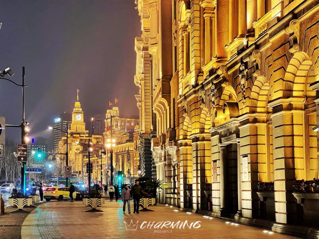 沿著中山東一路,萬國建筑群一字排開,不遠處便是外灘海關鐘樓,渾厚深沉的鐘聲時不時地回蕩在空氣中。