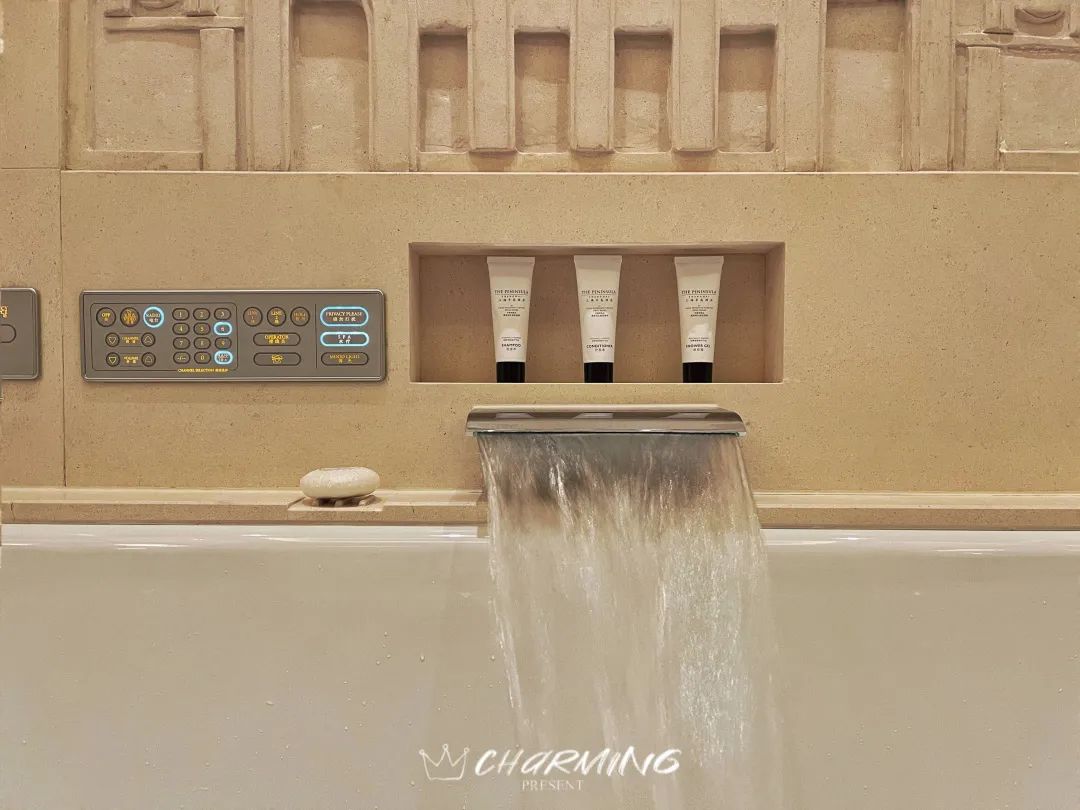 半島在服務上的精細體貼絕對是能打動人的,你甚至可以在浴缸旁找到一份內嵌電視的節目單。