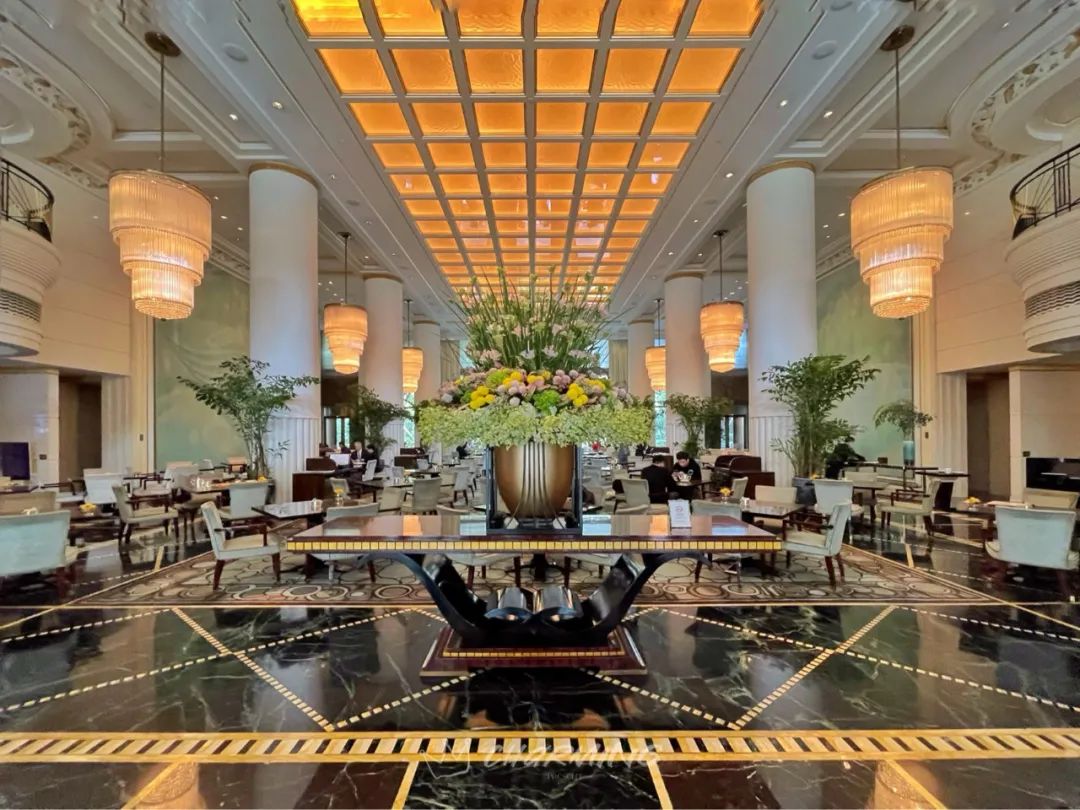 進入正門就來到了貴婦們最愛的The Lobby,這里是一座難求的半島下午茶所在地,也是酒店提供早餐的餐廳。碩大的精美花藝、雙層挑高高的大廳、乳白色古羅馬石柱、璀璨的琉璃水晶吊燈等等,處處散發著優美典雅的氣息。