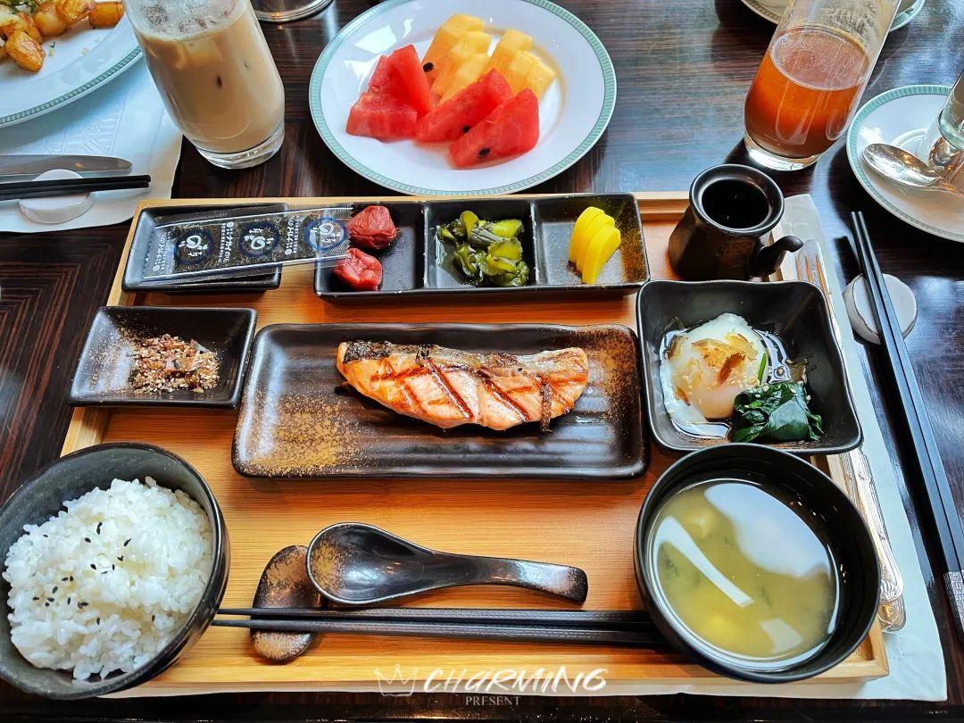日式早餐包含香煎三文魚、溫泉蛋、味增湯等,不論從賣相還是味道上來說都是極為正宗的日式早餐。