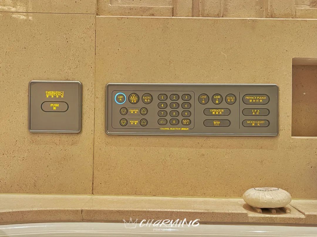 所有你需要進行的任何操作都可以通過電子按鍵完成。雖然目前來看,這些電子按鍵的外形仿佛已經不是時下最流行時髦的模樣,但很難想象,這間十年前開業的酒店,在智能化電子客房方面,至今依舊無人能超越。
