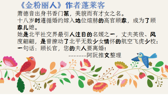 這本書是民國穿越文。女主角后來不得不做出的妥協,證明她也愛上了自己的丈夫,男主角的大男子主義在女主角面前也全都失去了。