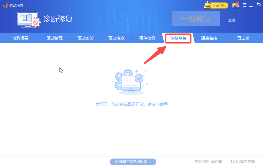 4、在界面中還有:驅動備份、驅動搜、硬件檢測、診斷修復、溫度監控、百寶箱等功能選項;