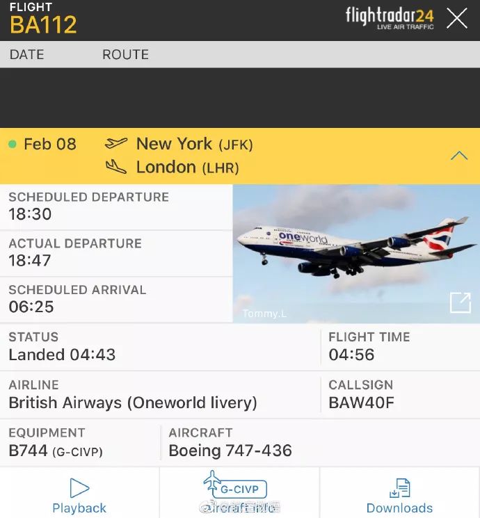 2月8日BA112航班基本飛行數據(數據源:FR24)