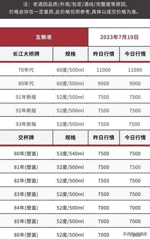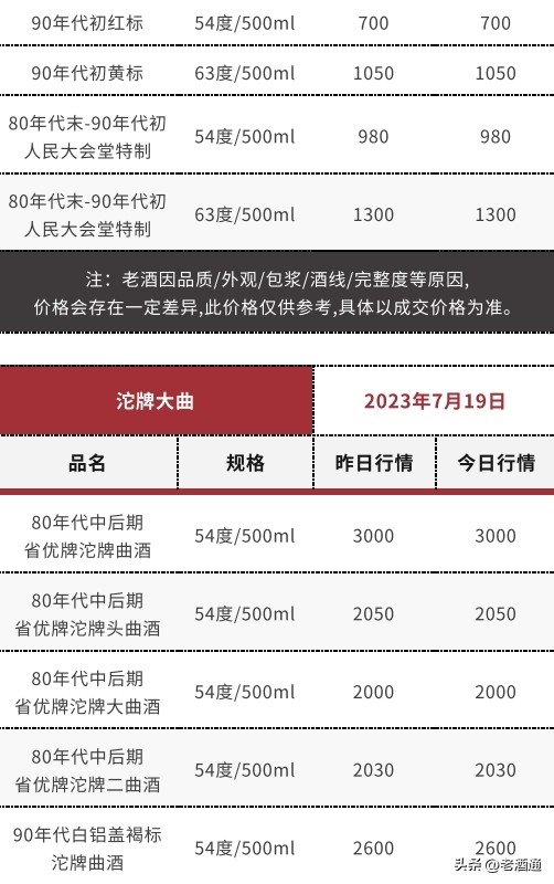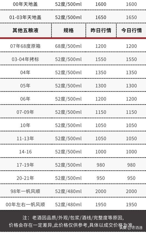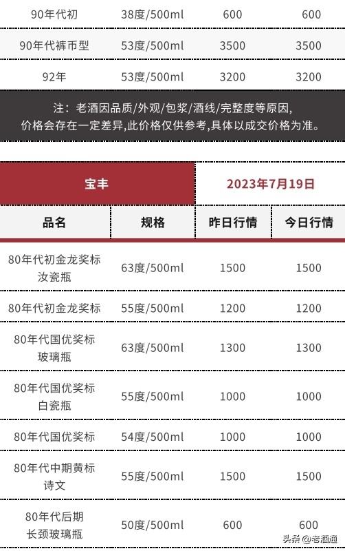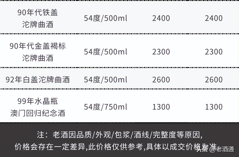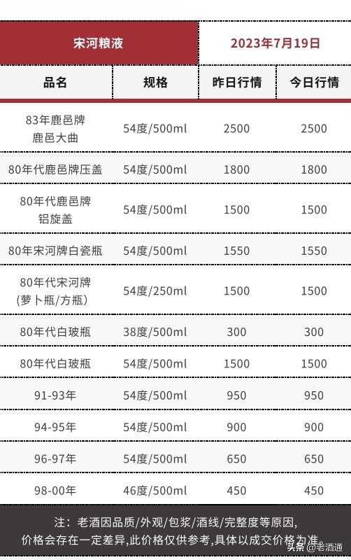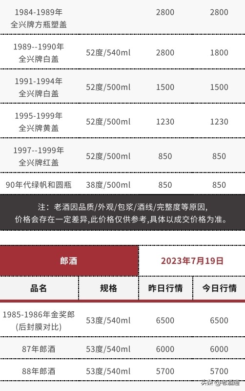 *價格說明:《老酒通》為信息交流服務平臺,所發布的商品價格均為參考價,與市場成交價存在一定價差,僅供酒商酒友參考。因老酒價格受酒體、品相、包裝、完整度、儲存、市場庫存等因素影響,即使是同款產品價格也會有所差距,還請知悉。