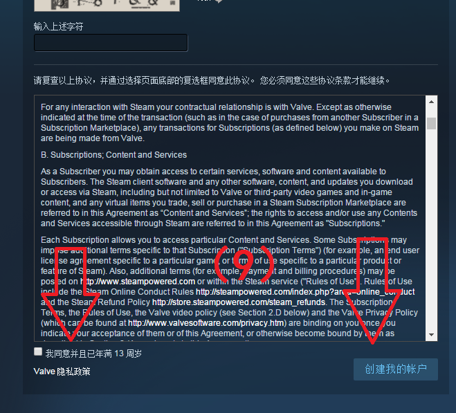 在(9)處打勾同意,并點擊創建我的賬戶。