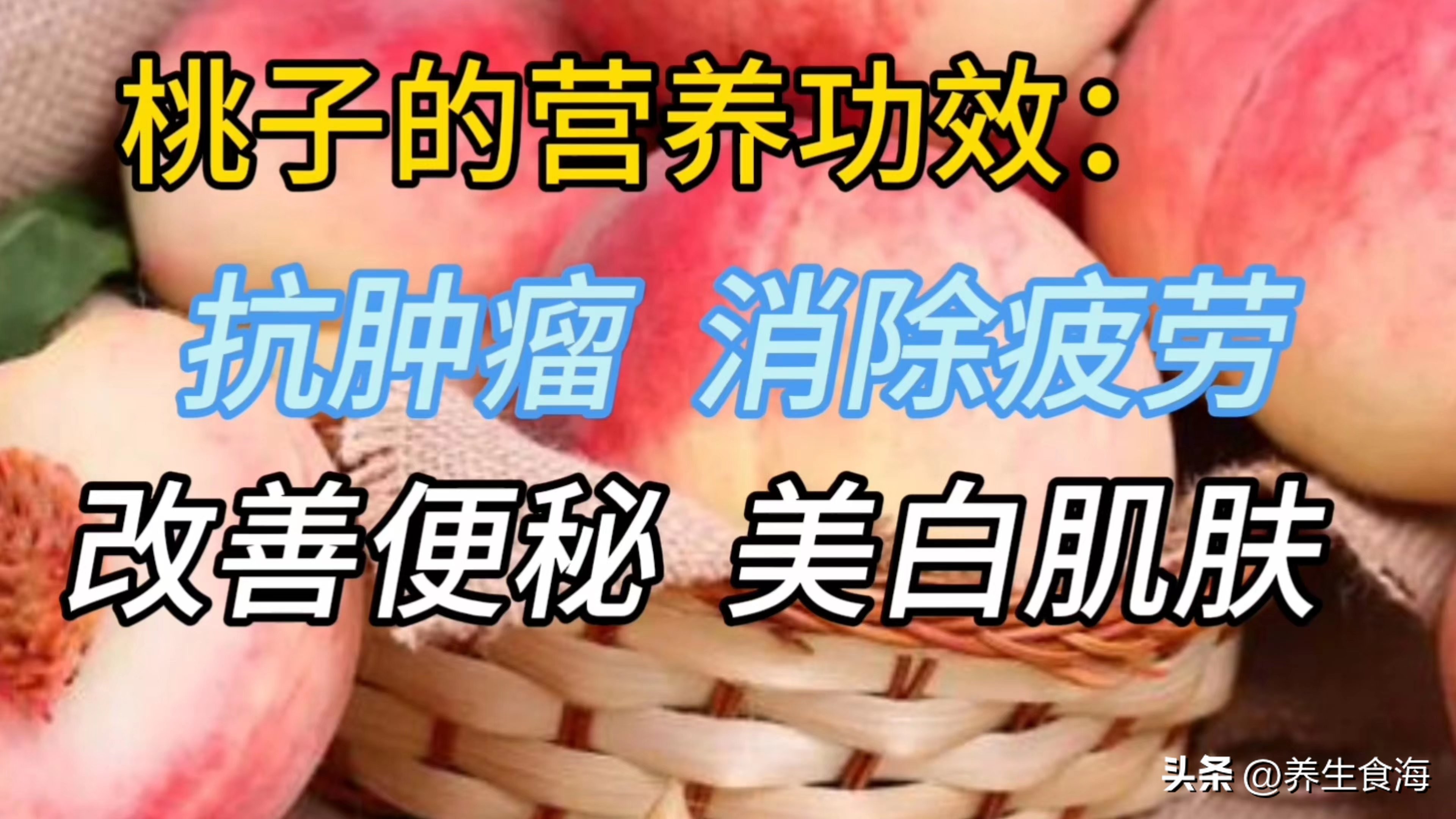 桃子富含維生素E、維生素C、鉀、蘋果酸、檸檬酸、煙堿酸、兒茶素、綠原酸、新綠原酸、膳食纖維等營養成分,其主要功效有: