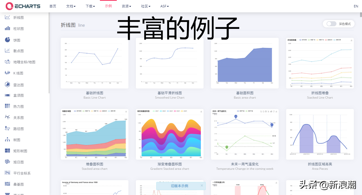 官方的例子 http://echarts.apache.org/examples/zh/index.html 很豐富 , 也很具有代表性 , 大家也可以在線對官方例子的數據進行編輯 , 可視化其實很簡單 , 逐漸摸索慢慢的就會熟悉啦 .