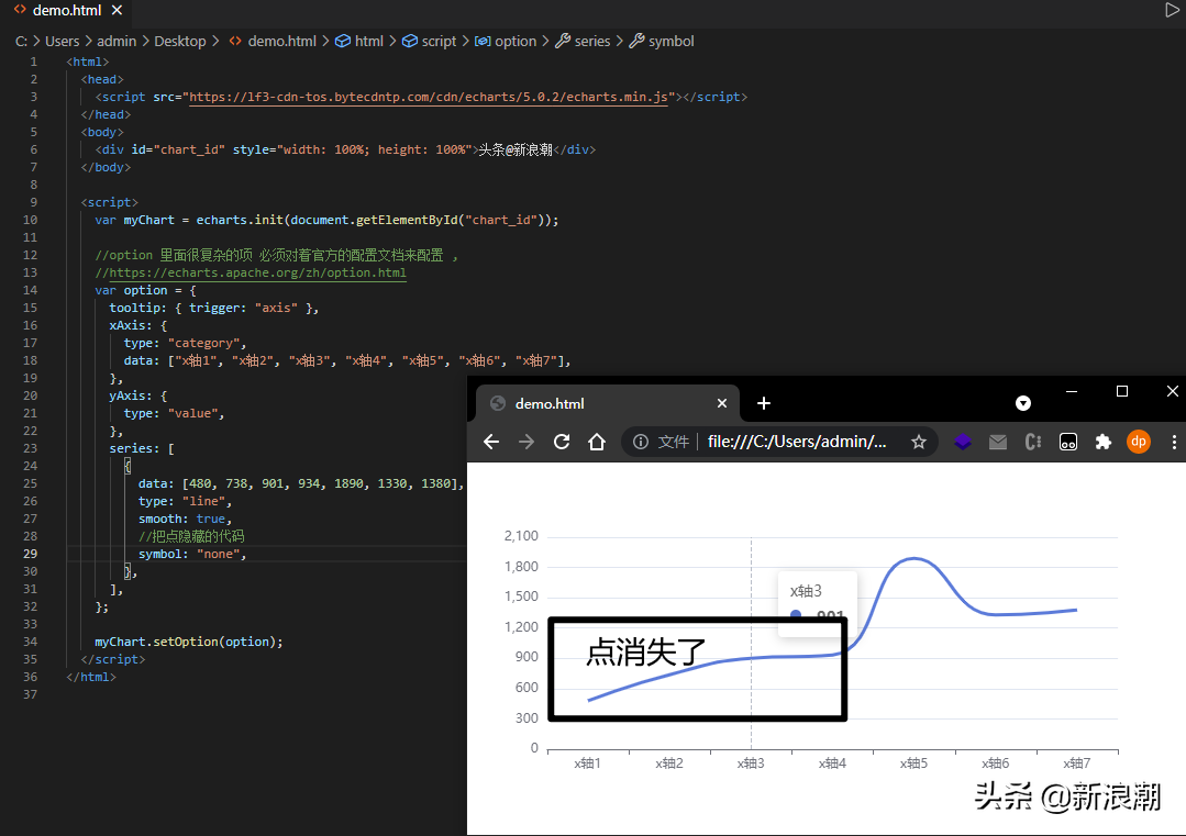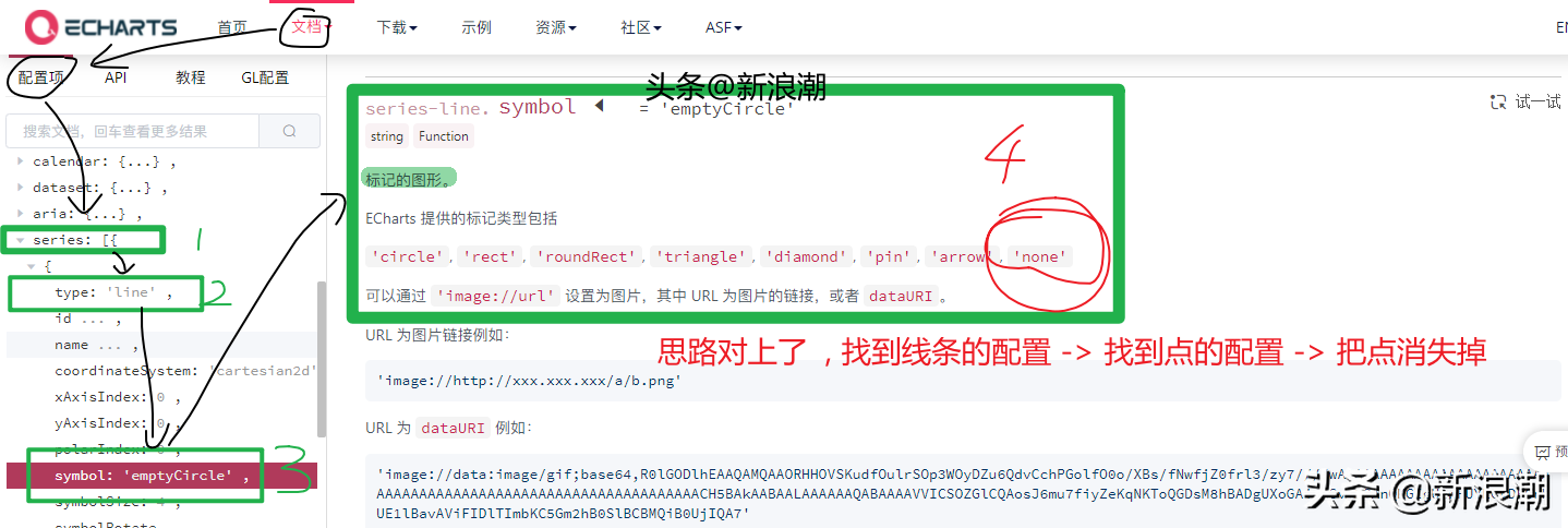 思路打開 , 先找到折線的配置項 , 然后去找點的配置項 , 然后把點給隱藏了 .