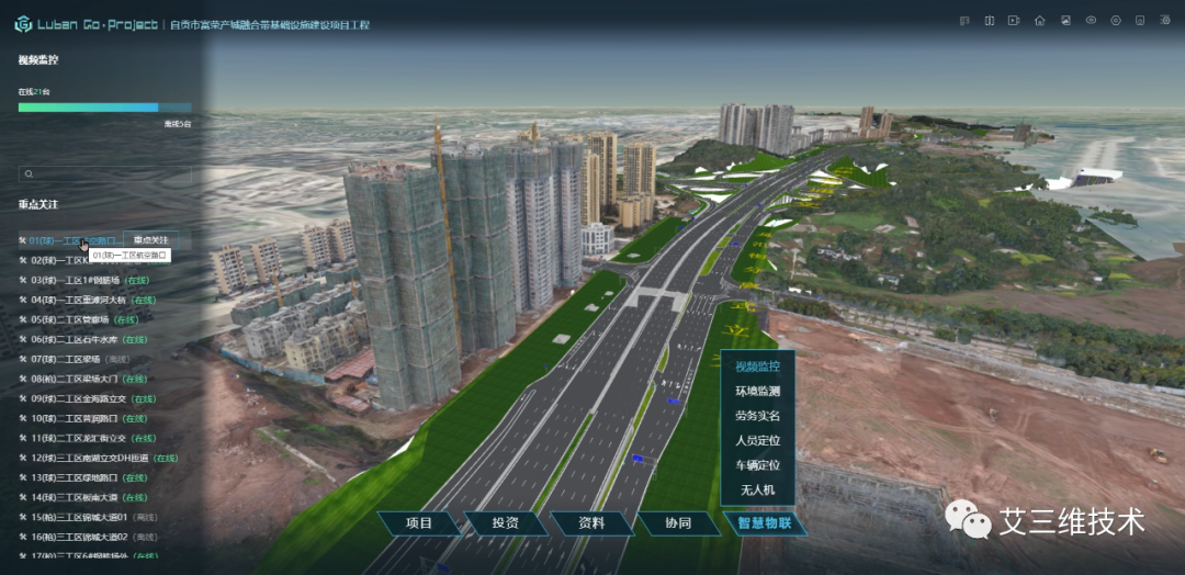 設計BIM模型、傾斜攝影模型導入指揮中心,并與衛星地圖相結合,呈現GIS效果,為后續項目管理溝通提供場景支撐,針對BIM模型和地形數據,可以根據相對位置關系和坐標定位進行整合,實現基于BIM+GIS的場景還原。實現基于GIS的進度、安全等方面的可視化。