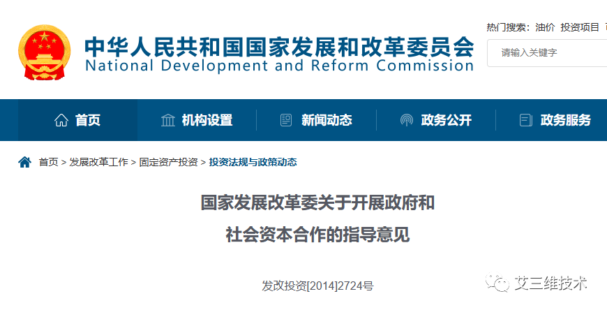 國家發展改革委發布《關于開展政府和社會資本合作的指導意見》,鼓勵和引導社會投資,增強公共產品供給能力,促進調結構、補短板、惠民生。國家發展改革委投資司委托中咨公司研究中心起草《政府和社會資本合作項目通用合同指南(2014版)》,用于規范和引導政府和社會資本合作(PPP)項目合同編寫工作的專業指南。
