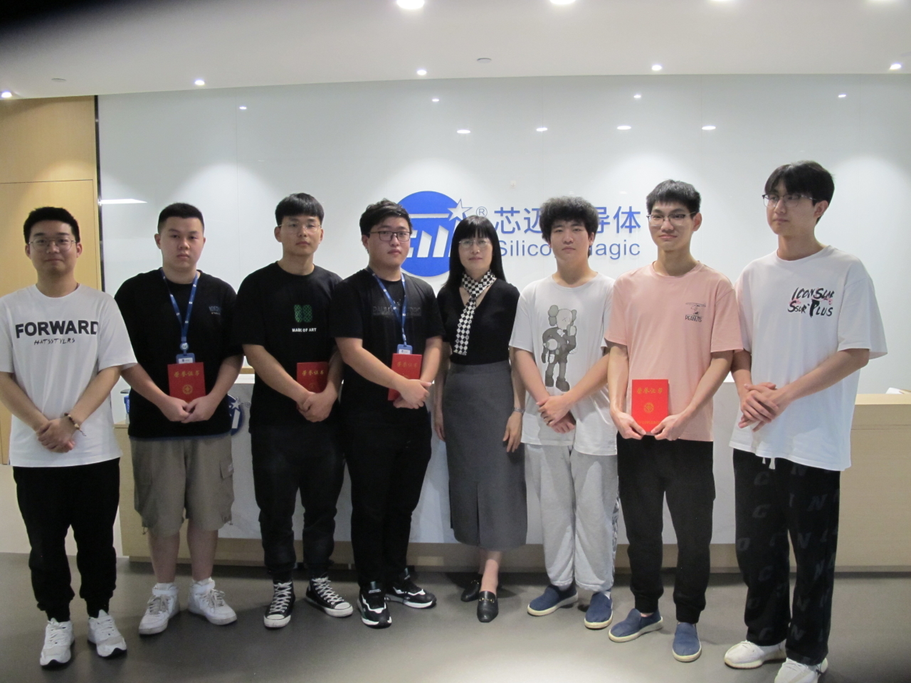 8個人中,應用電子技術20058班尹永政、王元浦、沈澤熙以及20059班張威、范盛甲、沈昱峰、唐邑均等7位同學,都是去年六月份畢業后,由余有芳作為班主任推薦進入公司的。還有一個女生,應用電子技術21062班鄧佳麗同學,則是今年在余有芳的安排下來到芯邁的。據沈昱峰介紹,他們目前是一周五天8小時彈性工作制,月薪9000左右,“五險一金”等待遇良好,大家對工作現狀、未來發展特別滿意。