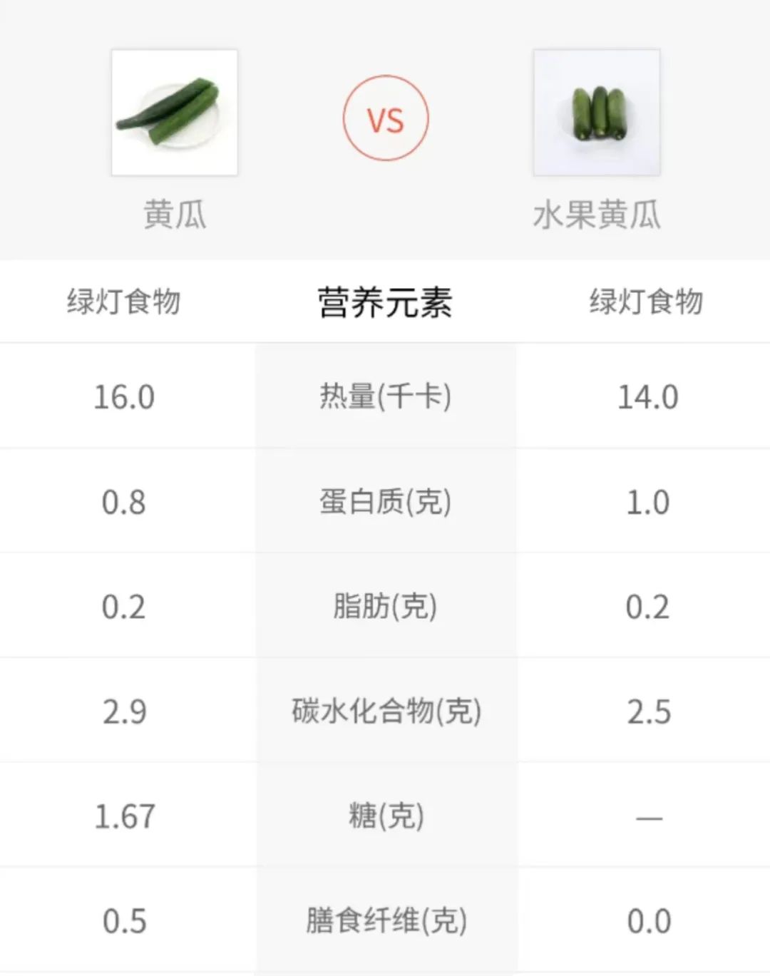 黃瓜的含糖量低、含水量高,據《中國食物成分表》中的數據顯示,黃瓜水分含量約為96%,堪稱食物界的“天然飲料”,就連西瓜和它相比也略遜一籌。