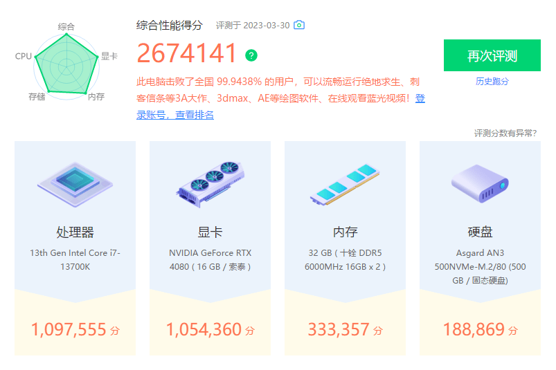 在默頻5200MHz下,娛樂大師跑分為2674141,其中內存得分為333357分。