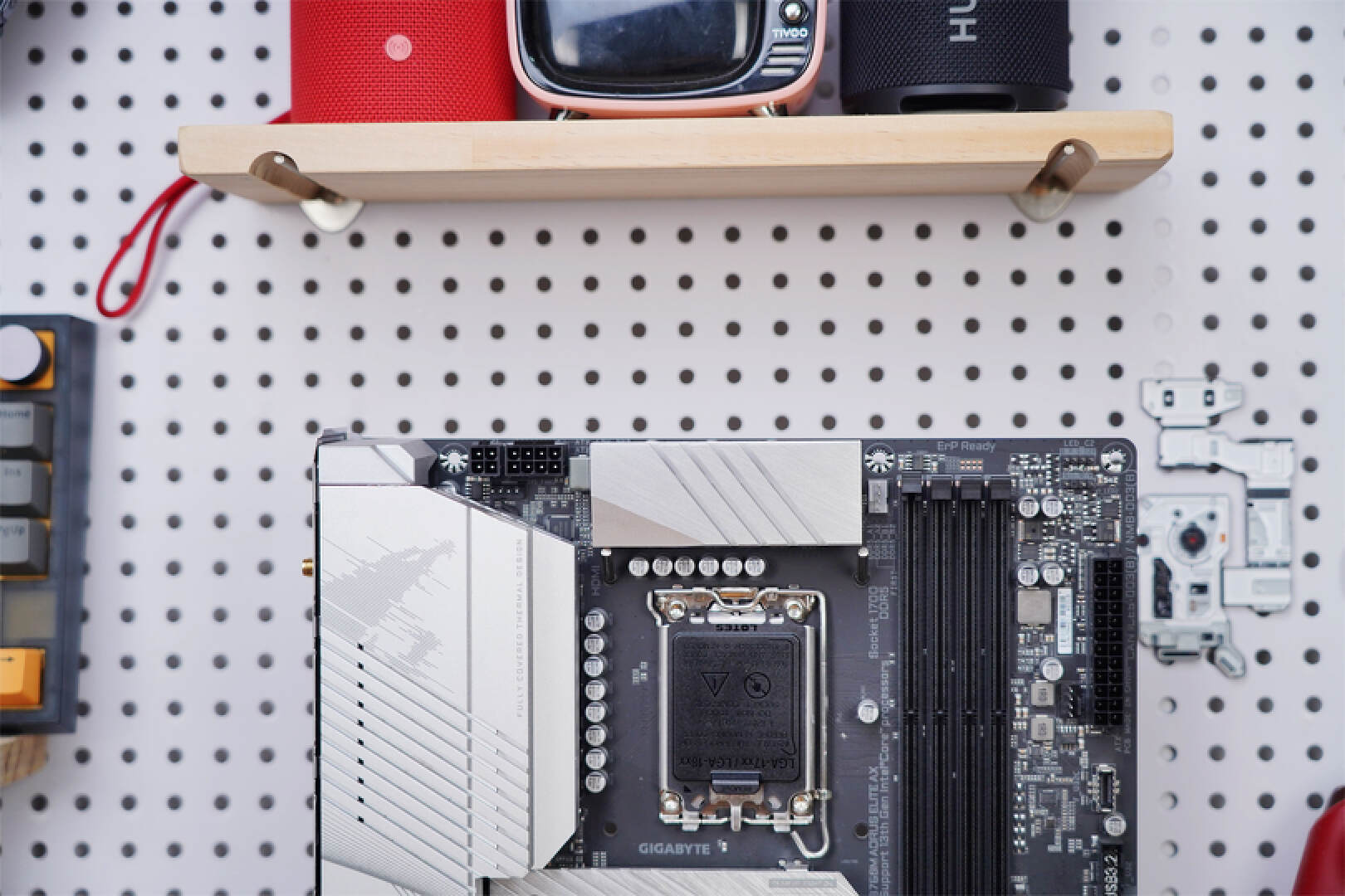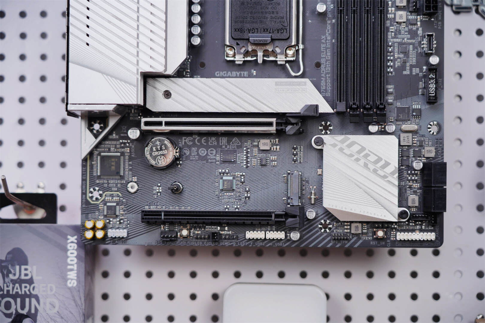 主PCIex16插槽為PCIe4.0x16速率,而且做了裝甲防護,性能和耐用度都有一定程度的提高。插槽還技嘉PCIe EZ-Latch快易拆卡扣,這樣拆卸顯卡的時候就非常的方便。