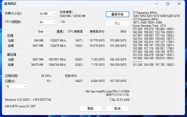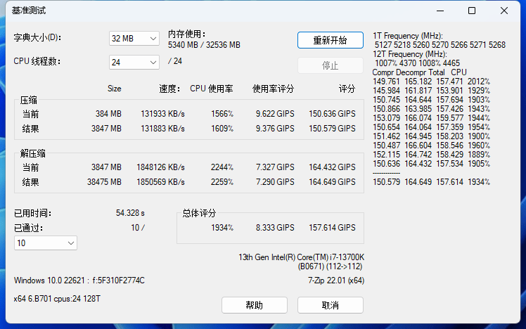 7-ZIP基準測試,整體的性能提升并不是很明顯。