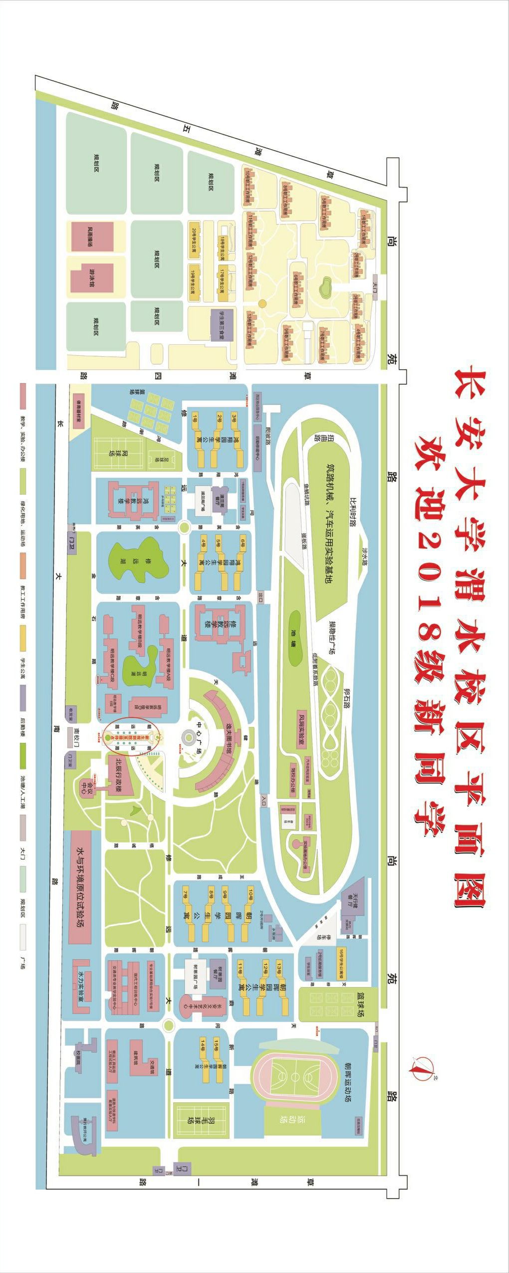 長安大學渭水校區(陜西省西安市尚苑路)。距離西安火車北客站(地鐵2號線終點)以西2.8公里,繞城高速、新機場高速漢城收費站出口1.5公里。