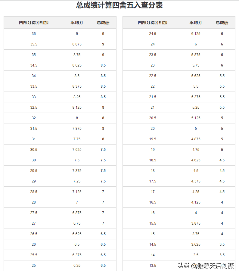 而真實的情況是,雅思分數為9分制,總成績取得是聽說讀寫四科平均分,而且只有半分或整分?