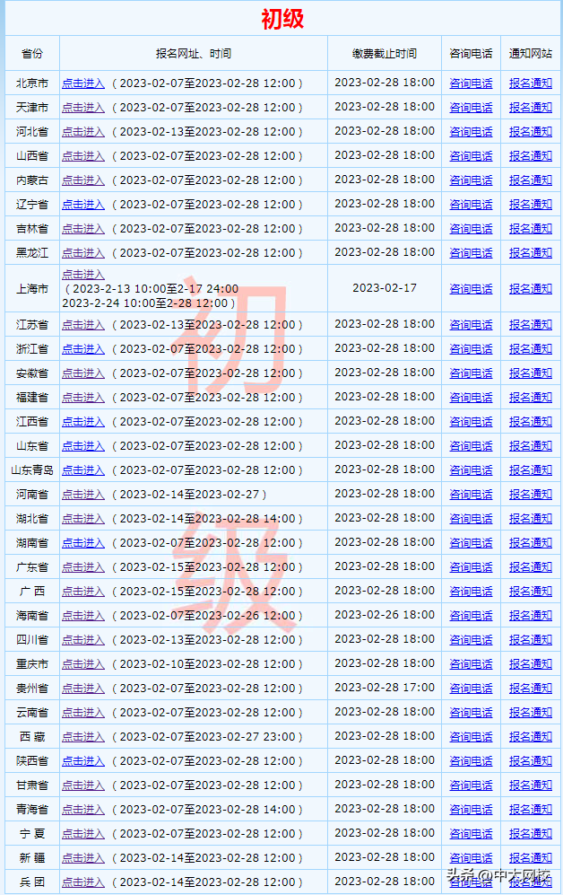 2023年各省初級會計資格考試報名時間、繳費時間一覽表