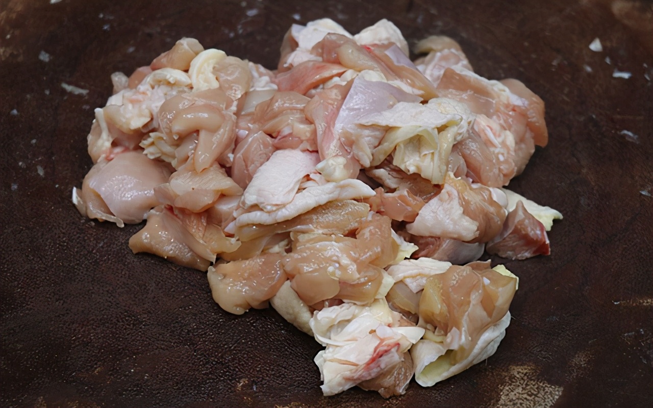 第一步:雞腿清洗干凈,然后把骨頭剃掉,再用刀把雞腿切一下;接著把雞腿肉切成條,再改刀切成小塊備用。