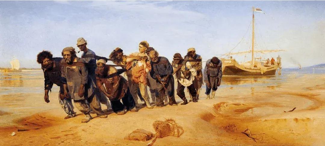 伏爾加河上的纖夫!初看不知畫中意,再看已是畫中人。