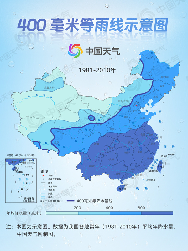 這條著名的胡煥庸線就和400毫米等雨線大體重合。