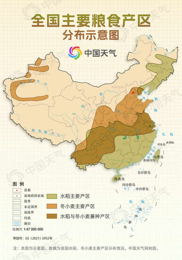 我國主要糧食產區分布示意圖
