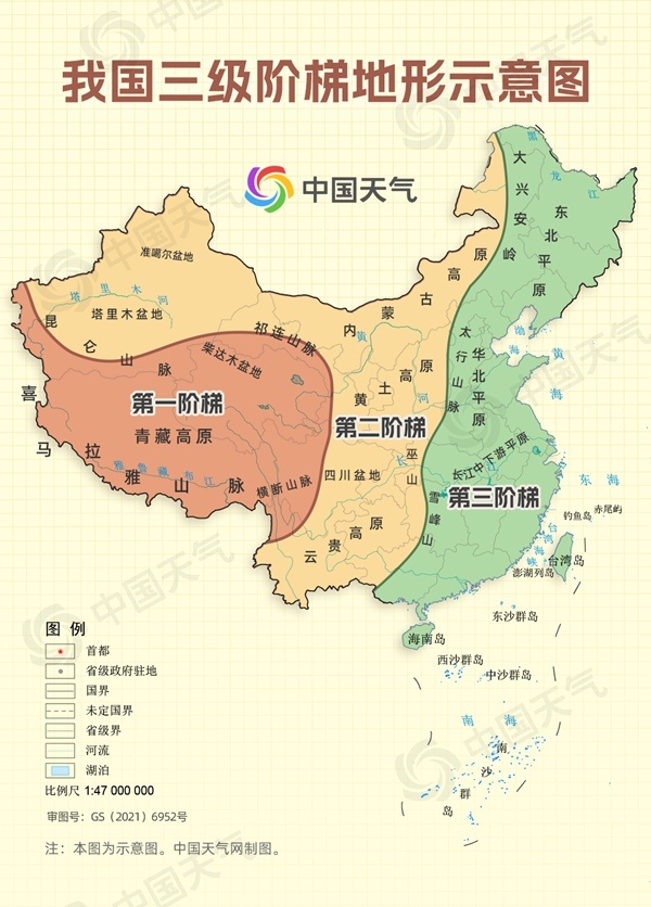 我國三級階梯地形示意圖