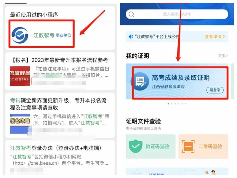 考生還可使用“江教智考”微信小程序開具2012—2023年“高考成績及錄取證明”。