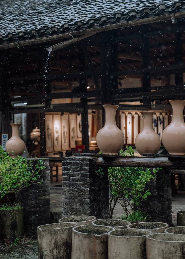 一場雨,來的很是時候,陰雨天仿佛與古瓷窯廠更配,讓人仿佛一秒鐘感受到了“天青色等煙雨”的柔美意境。