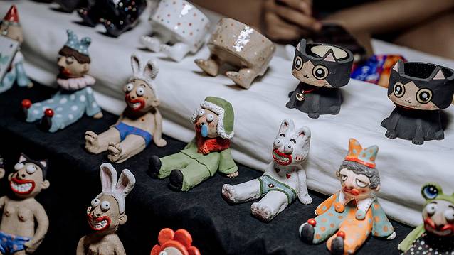 而同時你會驚喜的發現,這里的很多展品,在陶溪川的市集,都有出現過,原來,藝術家們也會將自己的“孩子們”帶到市集,見識人間煙火,尋找有緣人。