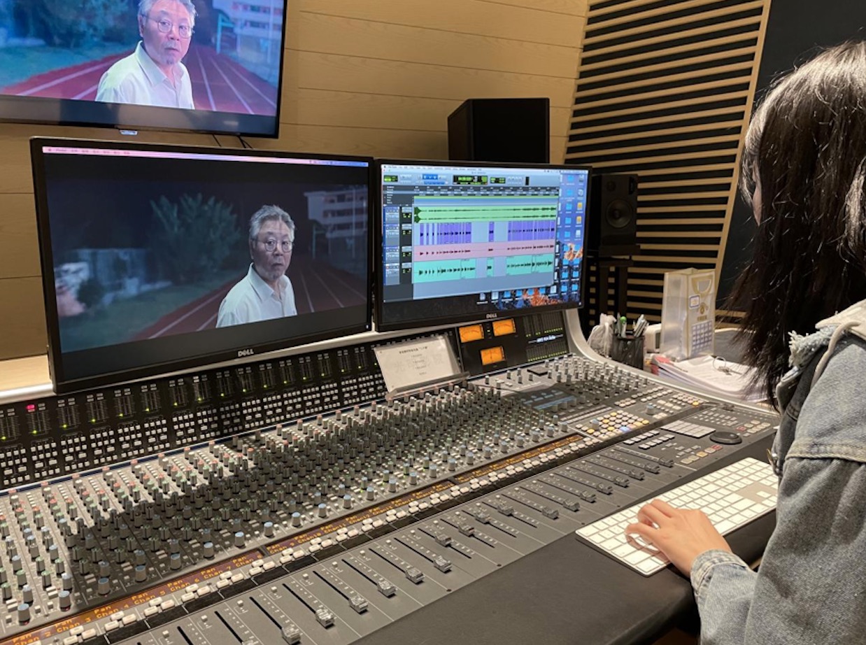 志愿者溫莫寒正在為電影《我和我的家鄉》錄制無障礙版的講述內容。她是“光明影院”項目“配音組”的組長,今年秋天即將成為在讀博士,最近一有時間就泡在錄音間里。