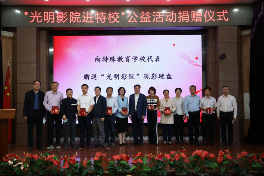 △“光明影院進特校”公益活動捐贈儀式,為全國2244所特殊教育學校的32萬殘障學生贈送了40部無障礙電影觀影硬盤。