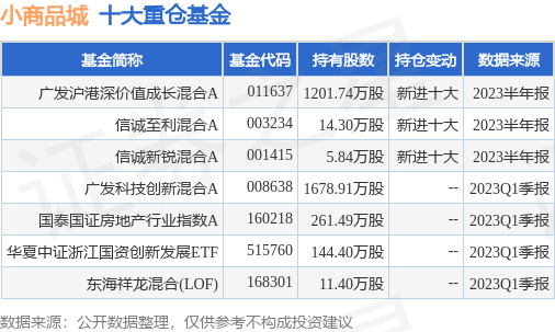 重倉小商品城的公募基金請見下表: