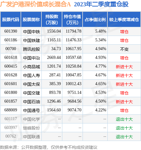 廣發滬港深價值成長混合A的前十大重倉股如下: