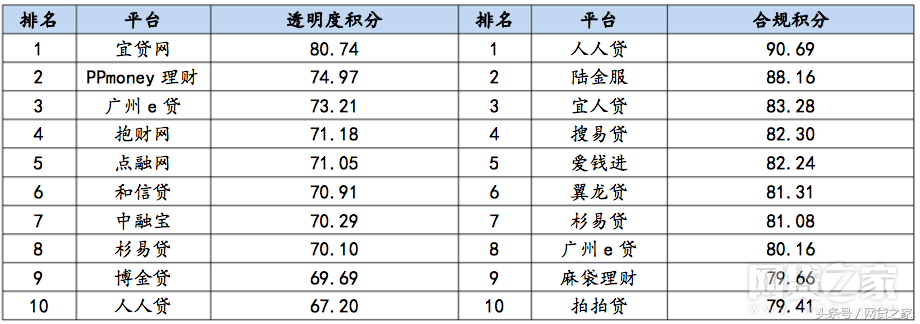 發展指數百強榜之“透明度、合規積分前十名P2P平臺”