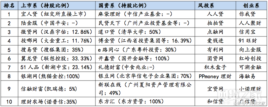 2017年8月“上市系、國資系、風投系、創業系P2P平臺TOP10”(點擊圖片查看大圖)