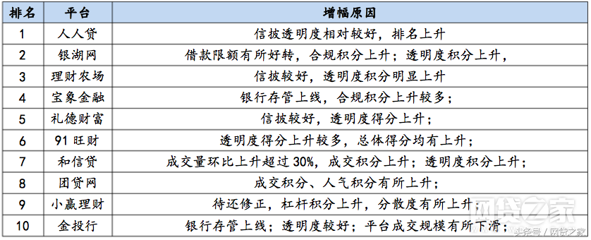 2017年8月名次增幅前十名P2P平臺(點擊圖片查看大圖)