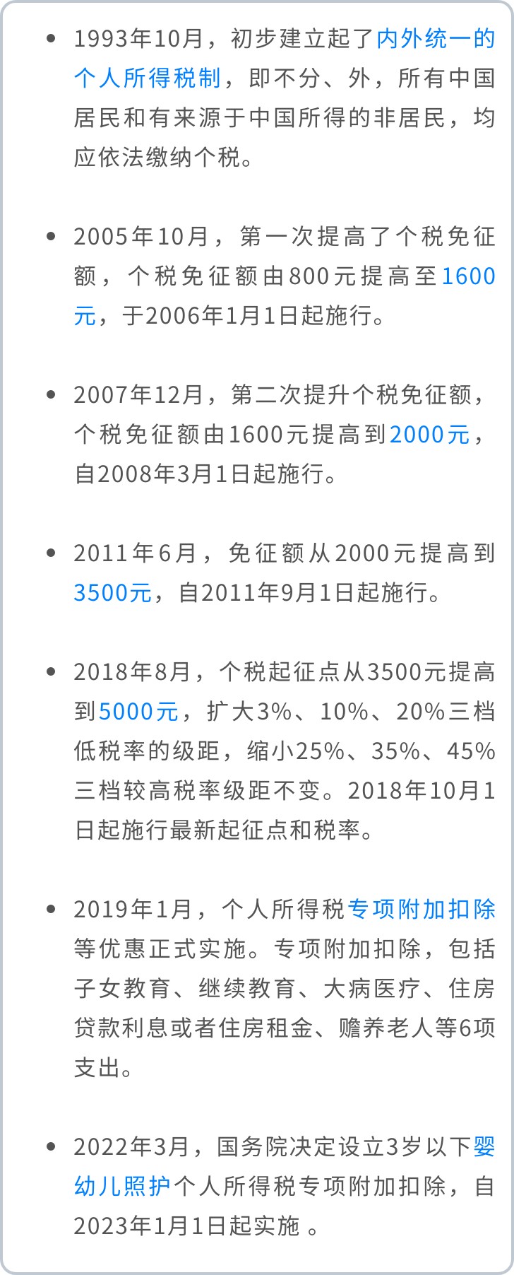我國于1980年9月頒布施行個人所得稅法,開始征收個人所得稅,同時確定了個稅800元的起征點。接下來跟小五一起來簡單回顧下個人所得稅的改革和發展歷程吧?